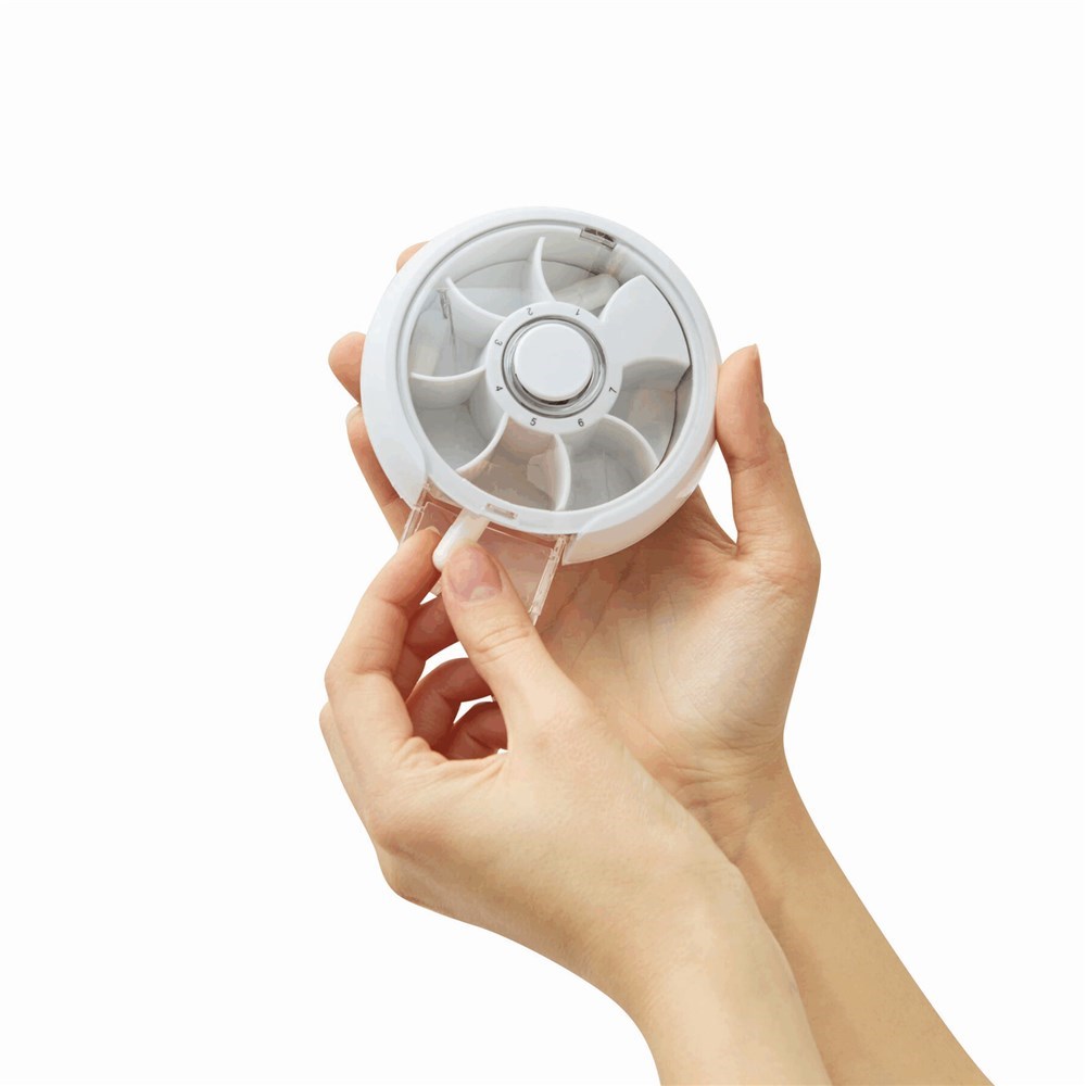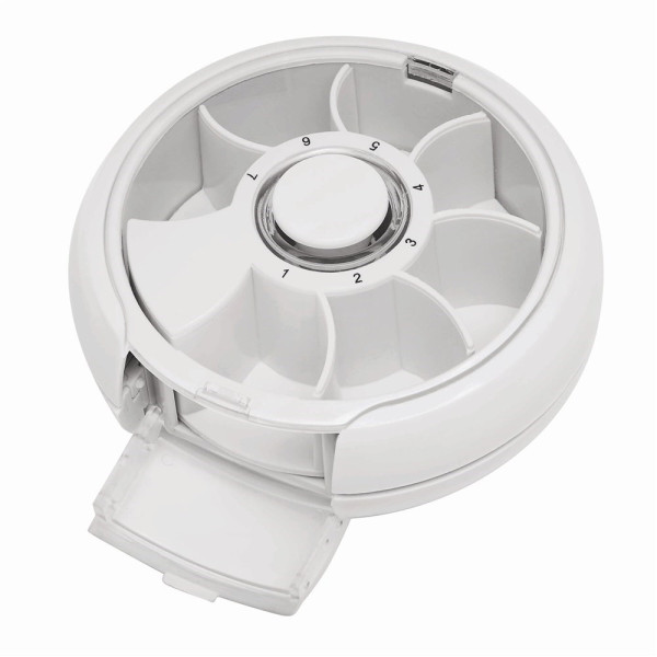 Pillendoos DAY BY DAY met 7 draaibare compartimenten en transparant klepje.