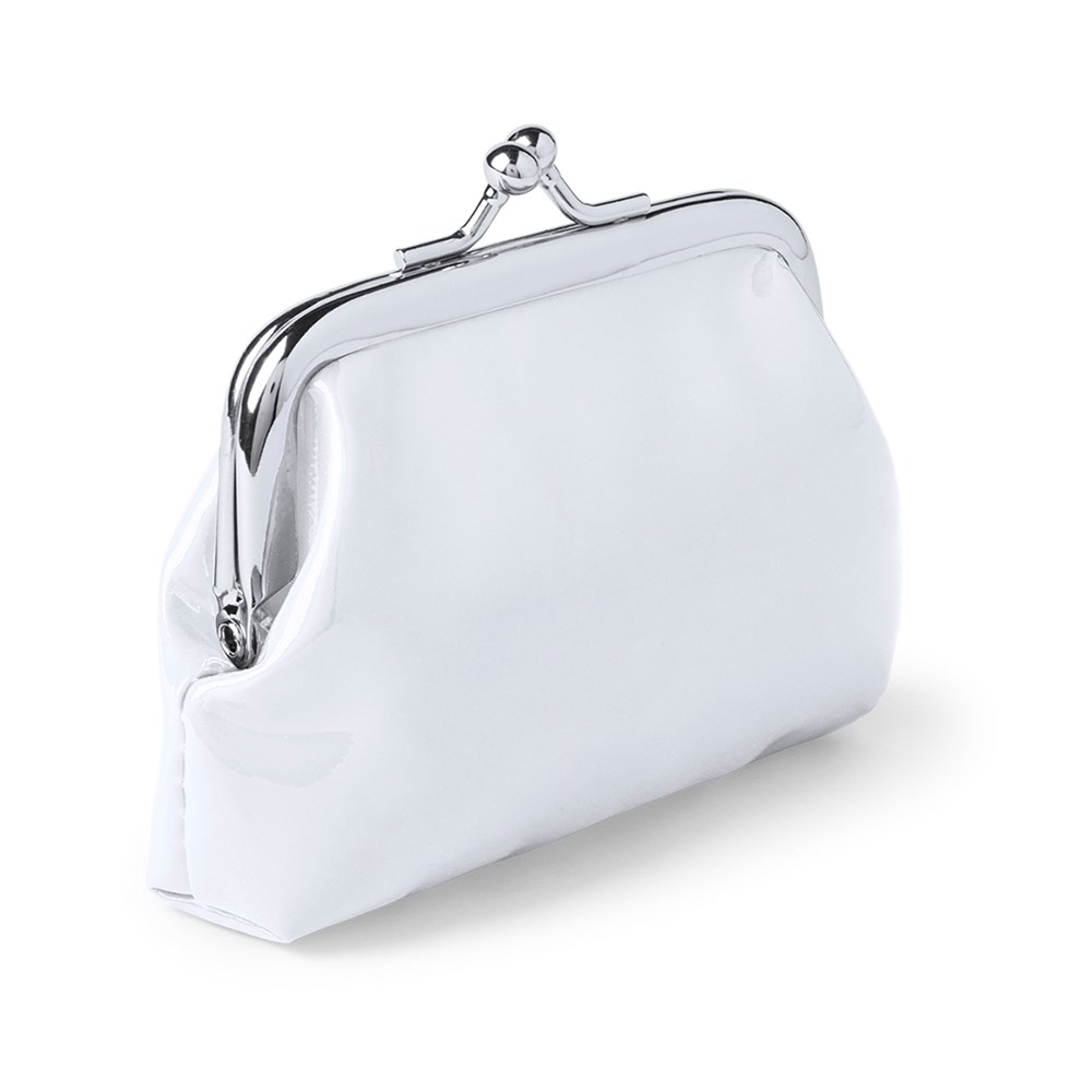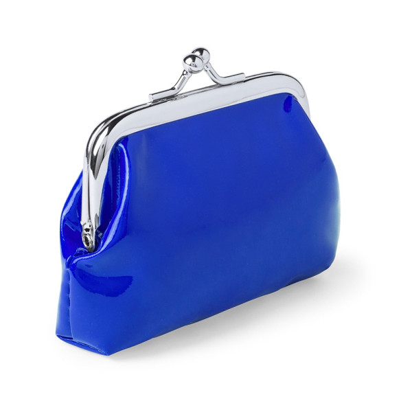 Portemonnee in een vrolijk ontwerp met zachte body van glanzend PVC in verschillende kleuren. Hoofdvak met versterkte, metalen gespsluiting.