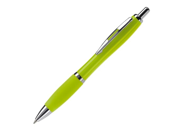 Hardcolour balpen met metalen clip, metal look drukknop, tussenring en penpunt. De pen bevat een blauwschrijvende Jumbo vulling. Vanaf 10.000 stuks andere kleurcombinaties mogelijk.