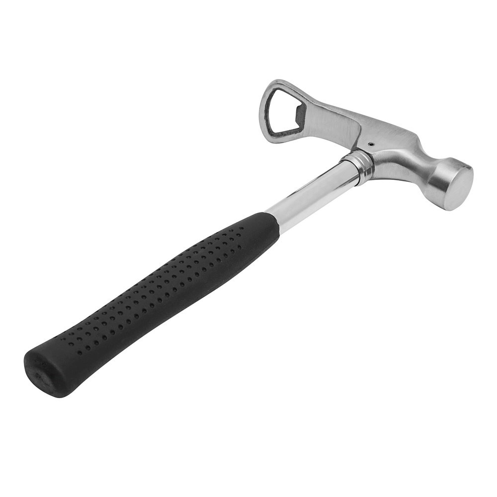 Vrijdagmiddag hamer met opener CLOCK OFF van roestvrijstaal met ergonomische kunststof handgreep.meer
