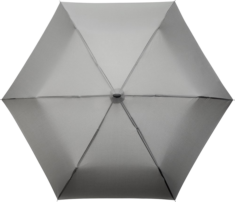 LGF-214 MINIMAX platte opvouwbare paraplu, windproof, 6 banen, 3-delig, metalen stok, zwart frame, zwart handvat, met foedraal.