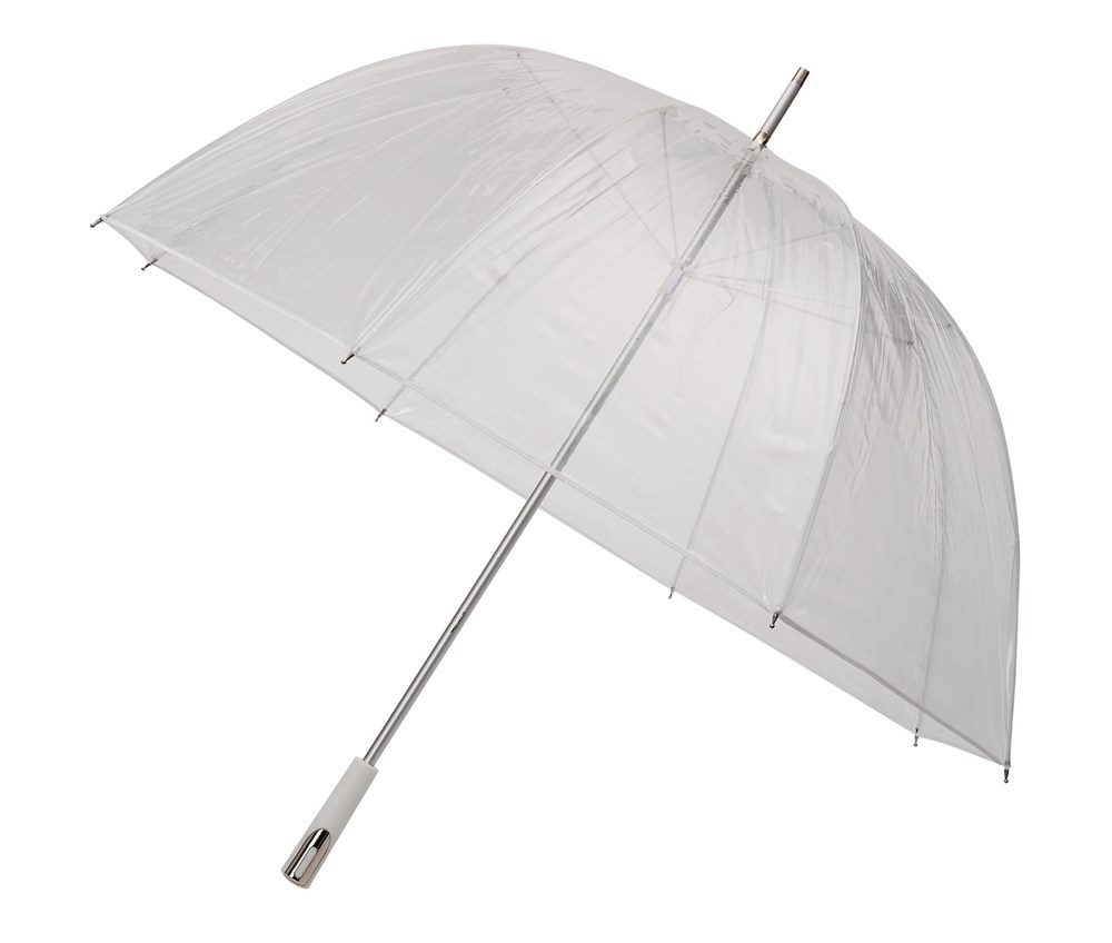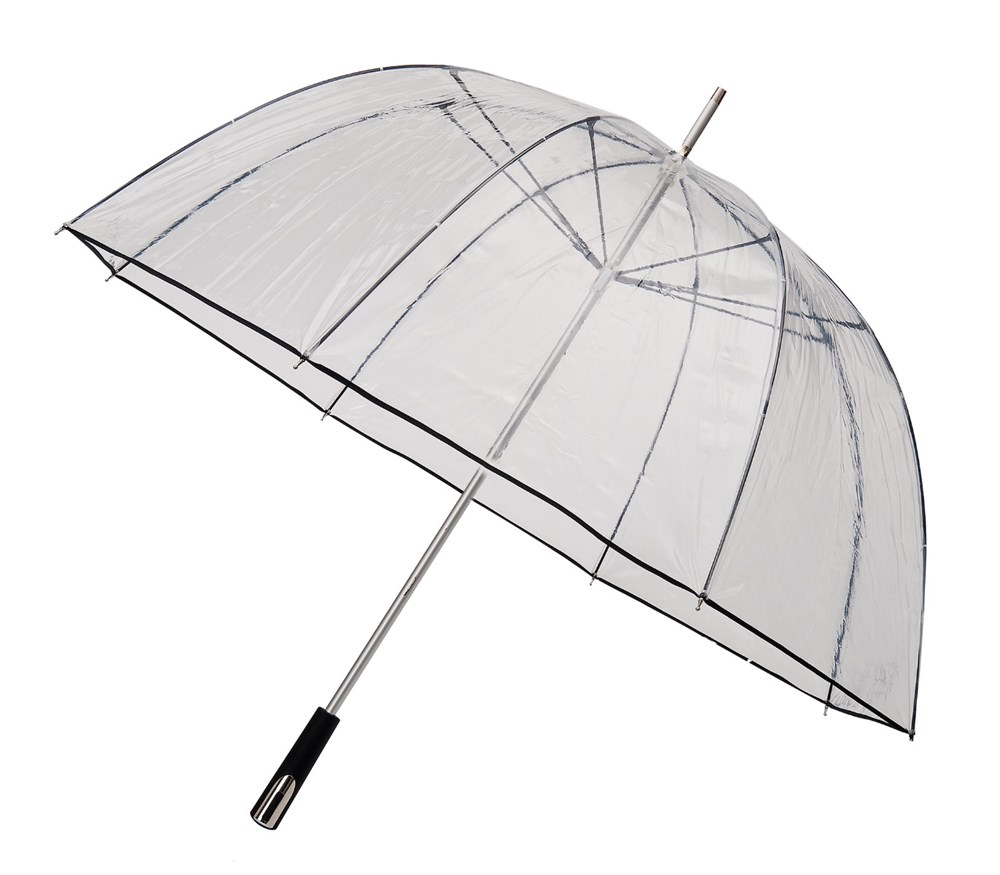 RD-2 FALCONE koepelparaplu, wit transparant PVC, 14 mm aluminium stok en bijpassend gekleurd rubber gecoat handvat en piping.