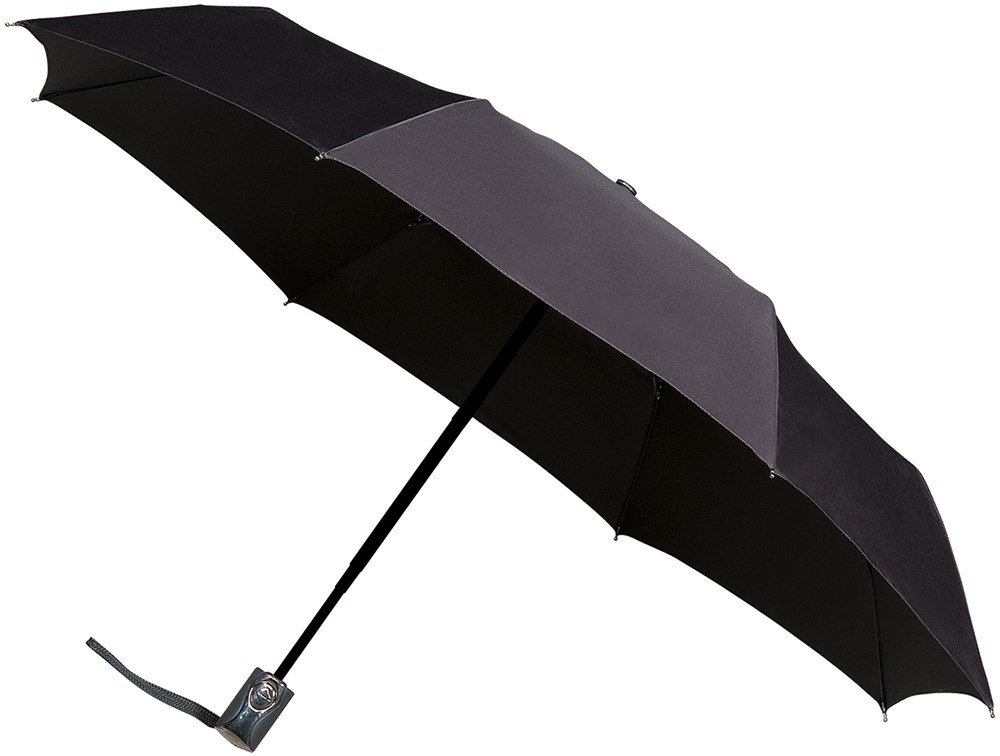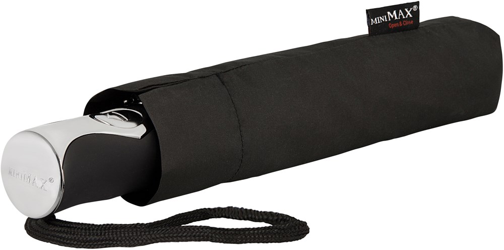 LGF-400 MINIMAX opvouwbare paraplu, windproof, automatisch open en close systeem, 3 delig, zwarte stok en zwart glasfiber frame, bijpassend gekleurd rubber gecoat handvat, met foedraal.