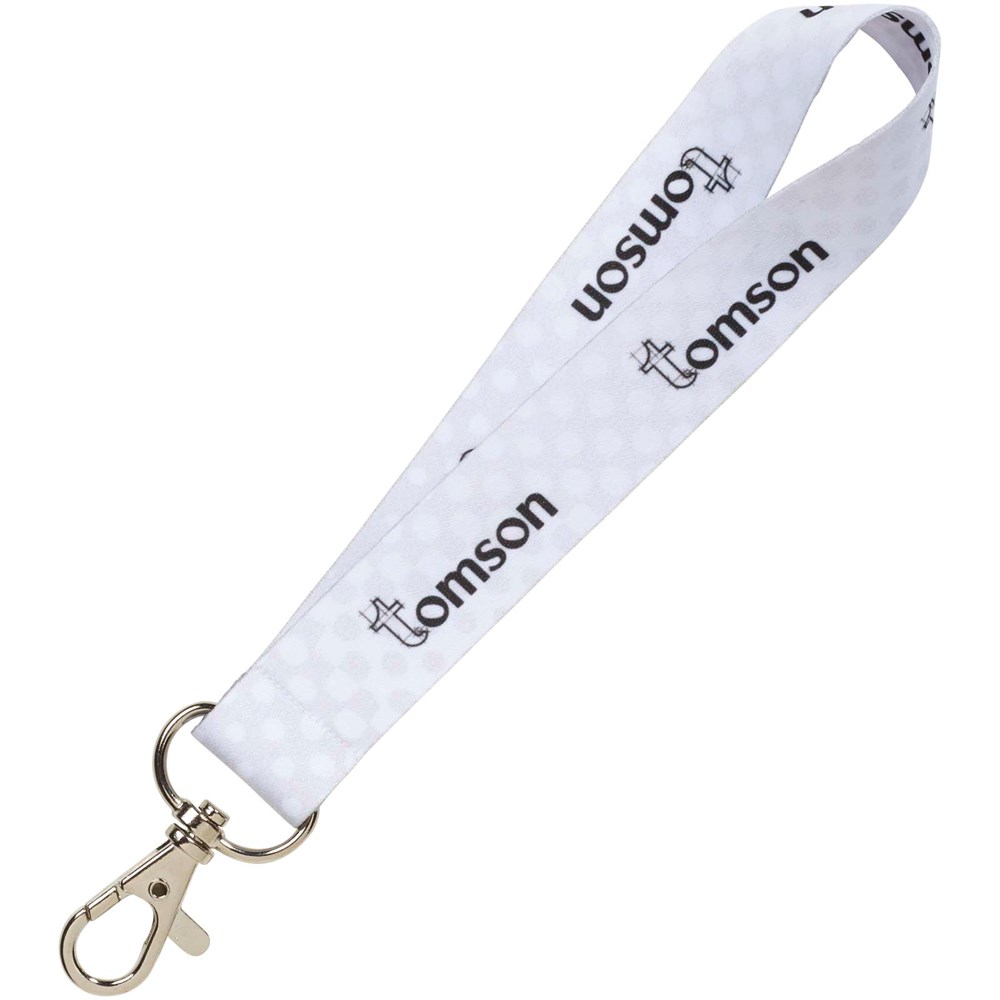 Mini full colour sublimatiel anyard. Bedrukking is beschikbaar aan één of beide zijden. Voor dubbelzijdige bedrukking kun je kiezen uit de standaard of fitted optie (fitted betekent dat de bedrukking aan beide zijden gelijk is). Lanyard heeft een metalen haak. Deze mini lanyard is een klassieke giveaway en geschikt voor een naambadge, ID-kaart of sleutels. Verkrijgbaar in 3 verschillende breedtes: 15, 20 en 25 mm.