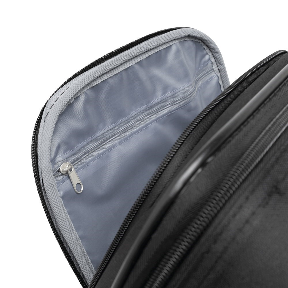 Trolley DUBLIN uit 600D polyester en EVA met gevoerde binnenkant, spanbanden, meerdere middels rits afsluitbare vakken, telescoophandvat, cijferslot en adreskaarthouder.
