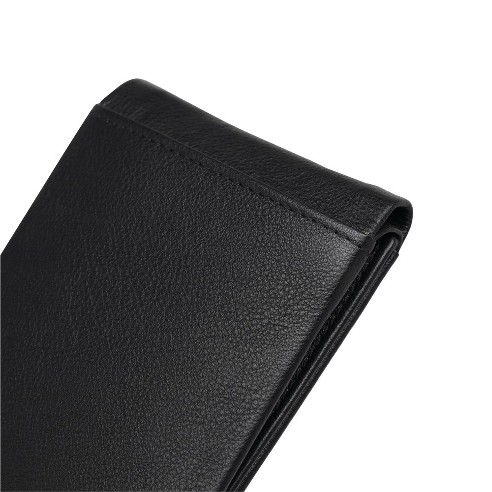 Lederen portemonnee HOLIDAY; 4 insteekvakken voor pasjes, 2 vakken voor bankbiljetten, een muntvak met drukknopsluiting, een netvak voor bijv ID-kaart of rijbewijs en aan de buitenzijde nog een extra insteekvak.
