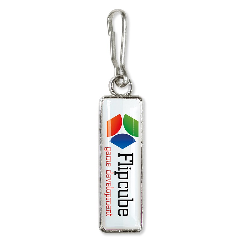 Een ritsopener met extra attentiewaarde? Met deze metalen rechthoekige zipper puller krijg je dat sowieso geritseld. De puller wordt geleverd met een fraaie dominglabel aan een zijde Drukformaat 35 x 10 mm