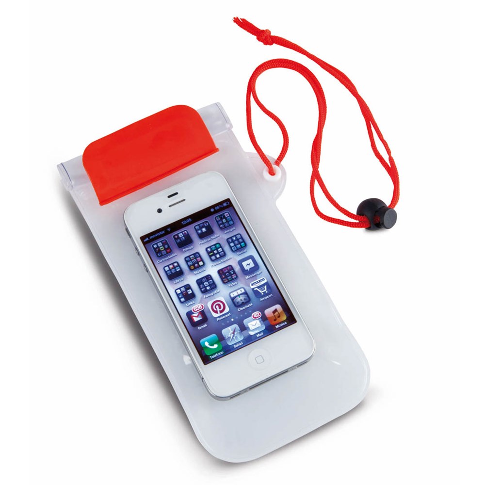Waterdicht, multifunctioneel tasje van PVC met dubbel veiligheidssysteem om waterdichtheid te behouden. Met afdrukgebied aan de voorzijde. Het draagkoord is in bijpassende kleur - inclusief aanpassingsaccessoire.