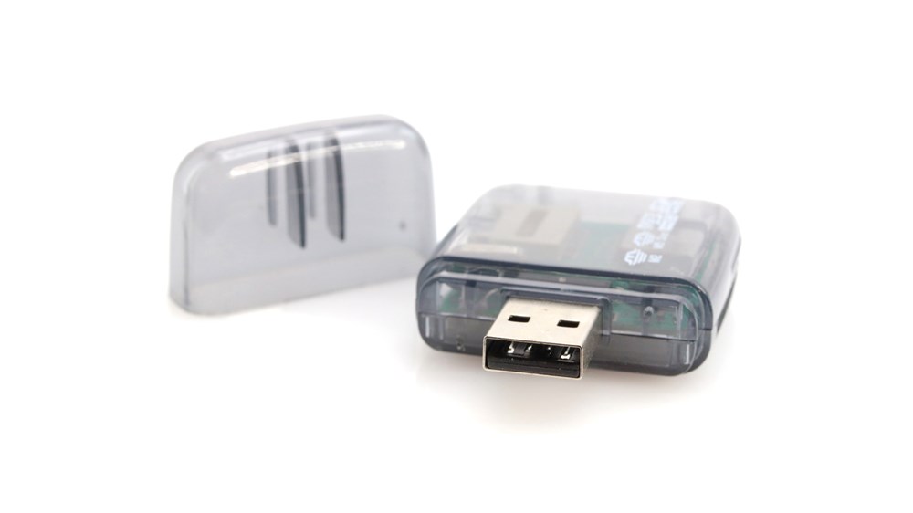 Kaartlezer met USB 2.0-aansluiting in leuke, doorschijnende kleuren. Compatibel met M2, MS Duo, micro SD- en SD-kaarten. Gepresenteerd in een doos.