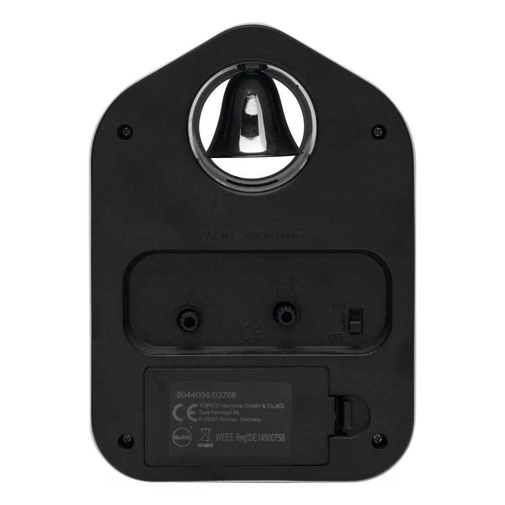 Analoge bureauklok BELL in de vorm van een klokkentoren met een metalen bel en alarmfunctie.