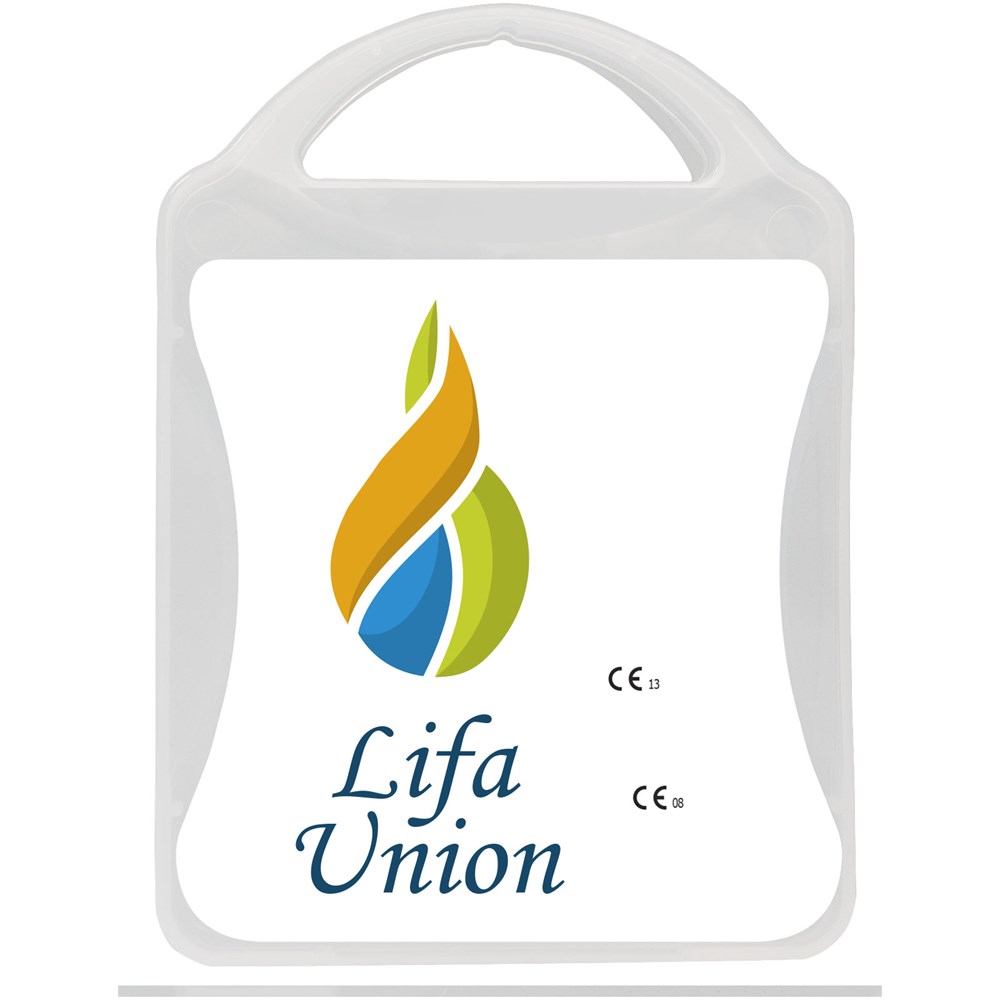 Ideale kit voor kinderen. Deze kit zorgt ervoor dat je kinderen veiliger en beter zichtbaar zijn op de weg. Inhoud: 1 veiligheidsvest, 2 slap wraps en 2 reflecterende sleutelhangers. Alle eerstehulp- en verzorgingsproducten in de kit voldoen aan alle geldende EU-voorschriften. Prijs is inclusief full colour bedrukking.