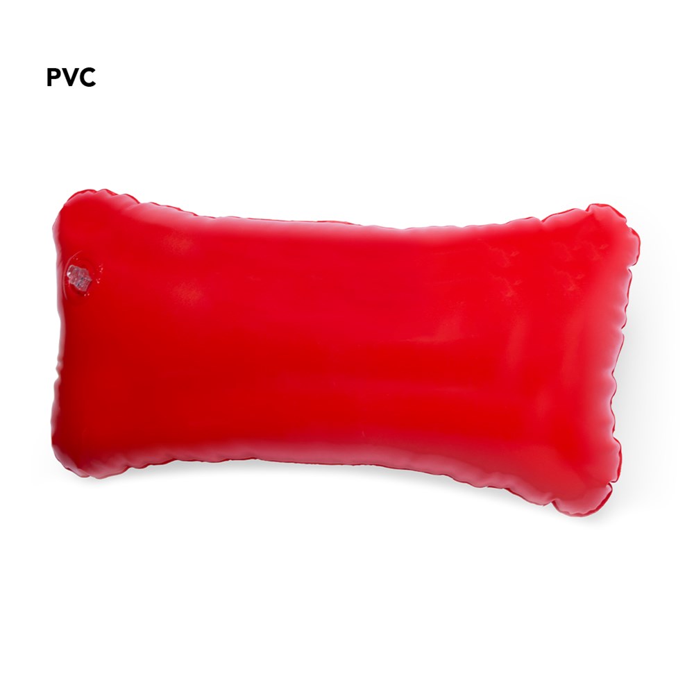 Opblaasbaar kussen van stevig PVC en verschillende kleuren.