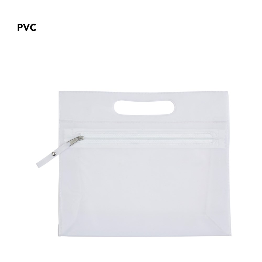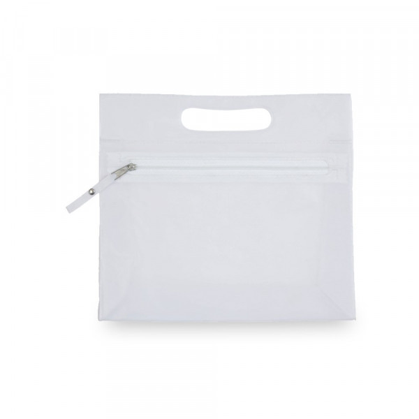 Multifunctionele beauty bag van stevig, doorschijnend PVC in verschillende kleuren. Met een stevige, gestanste handgreep en bijpassende kleur ritssluiting met grote trekker voor het eenvoudig openen.