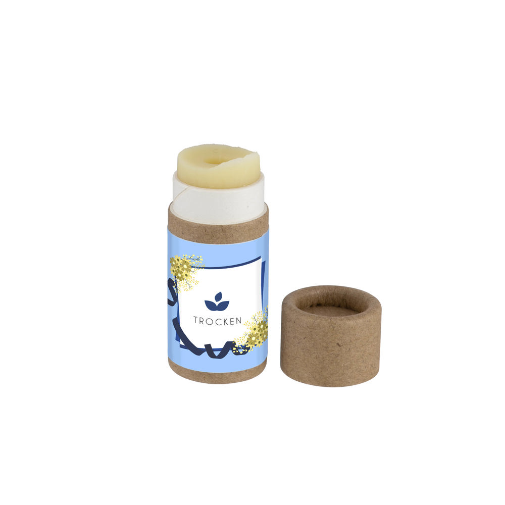 Hoge kwaliteit vegan lippenbalsem in composteerbare huls. Dermatologisch getest, geproduceerd in Duitsland volgens de Europese Cosmetica verordening 1223/2009/EG.